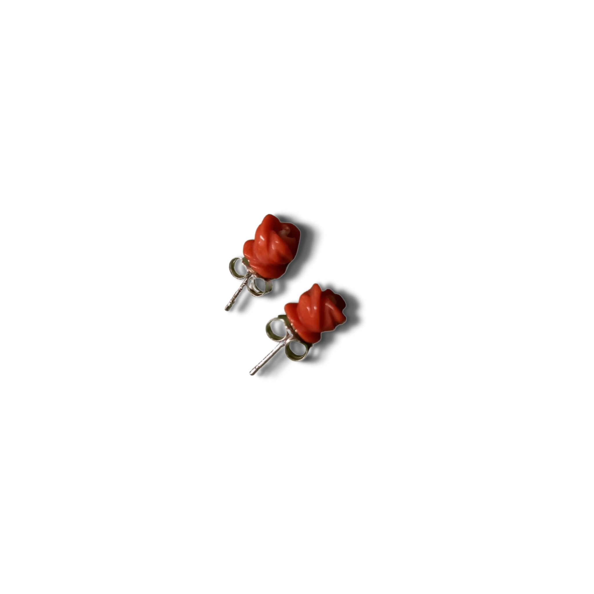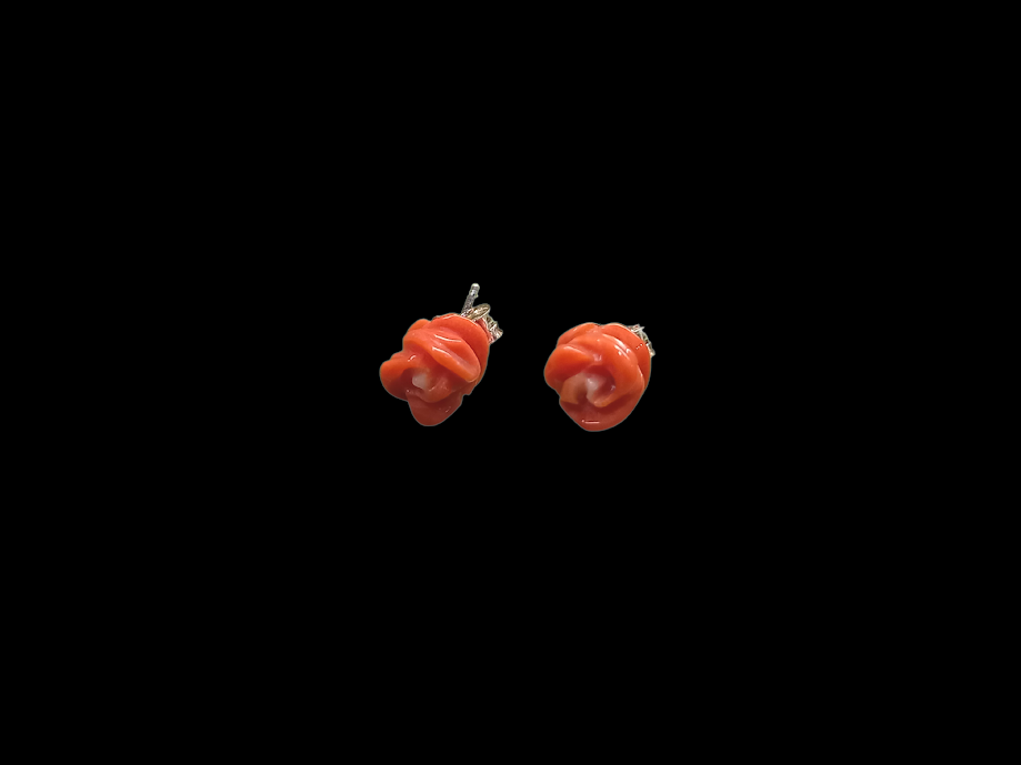 Orecchini in corallo mediterraneo incisi in una rosa e argento 925%