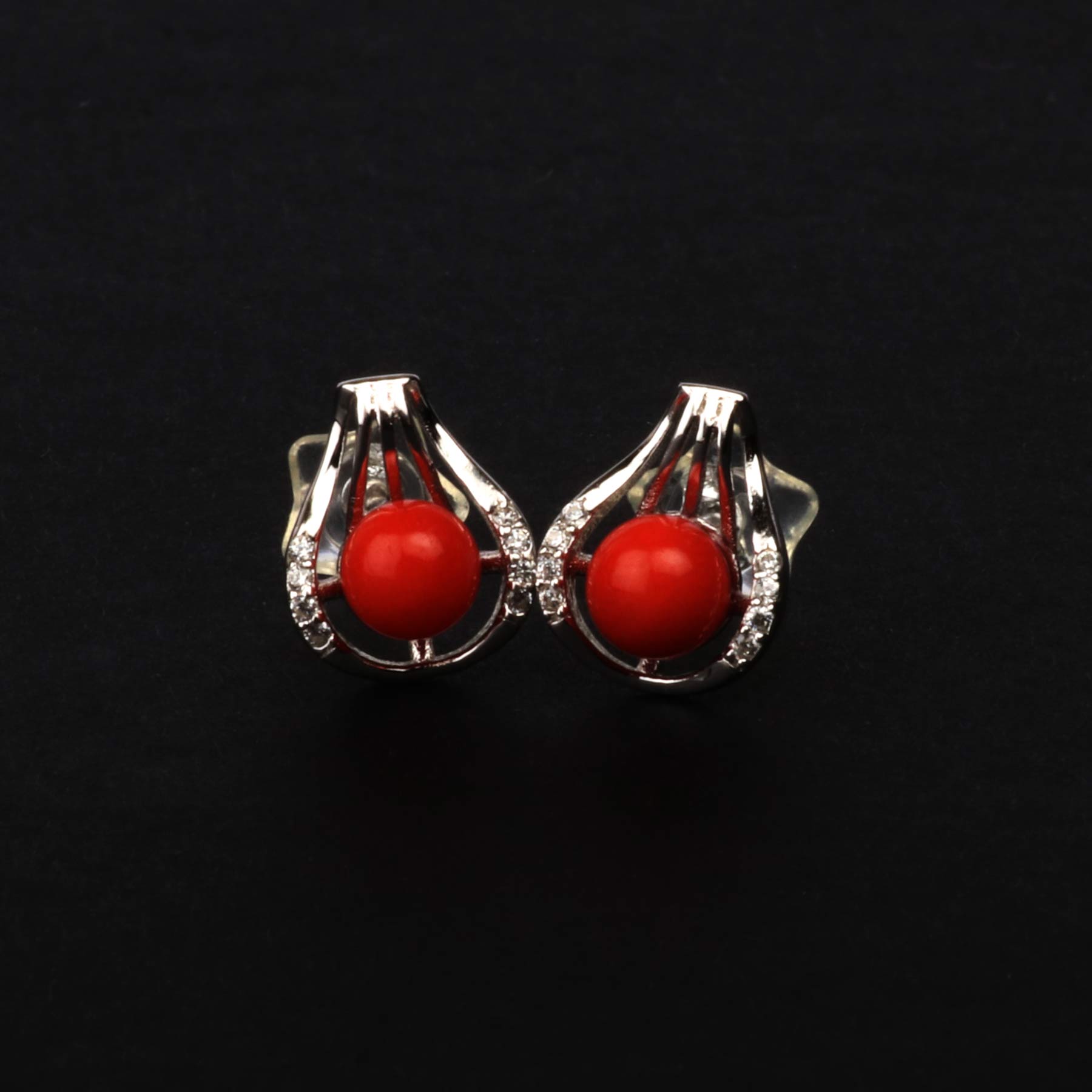 Orecchini Simple con argento 925% e corallo Mediterraneo